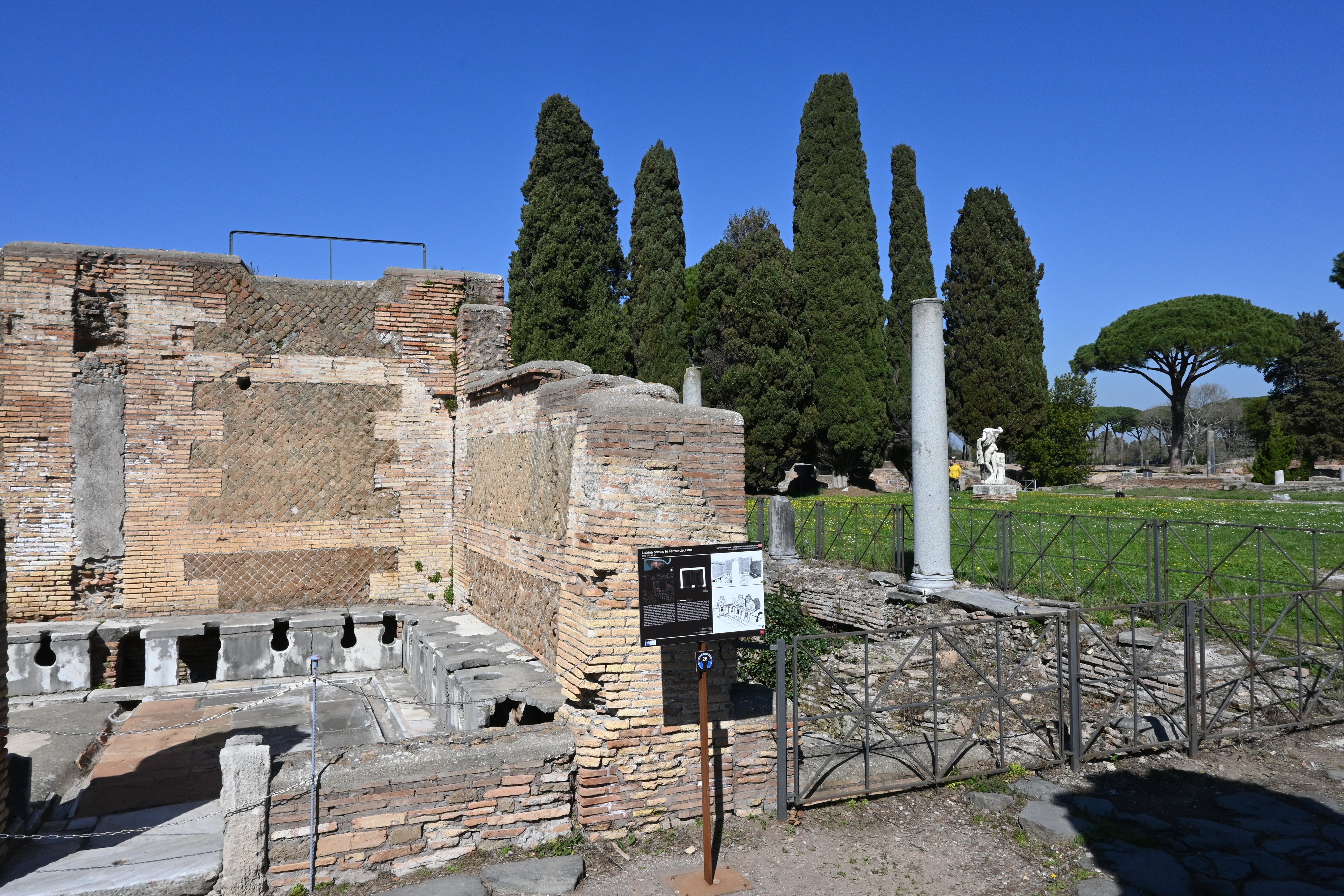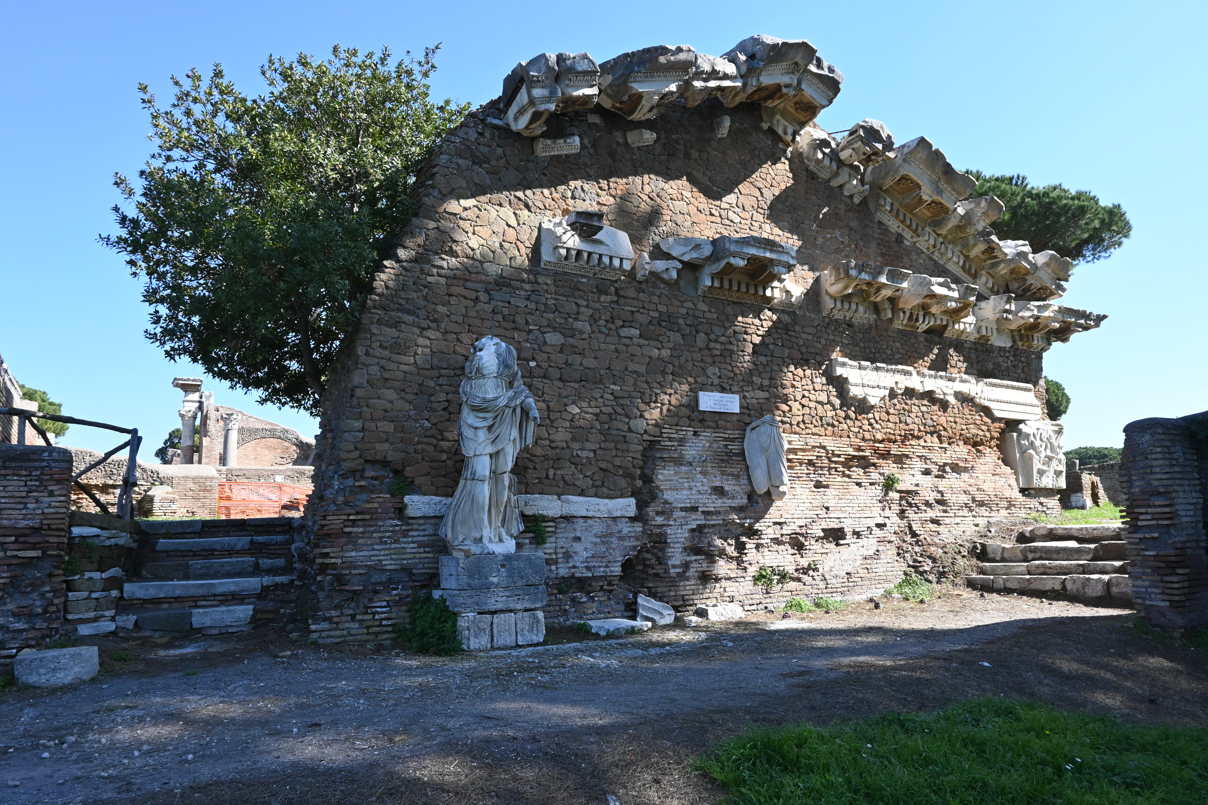 In Roman times, Ostia was the main seaport for goods coming to Rome. More than that, it became a seaside retreat for wealthy Romans. It was attacked, burnt, ransacked and rebuilt several times but eventually abandoned by the time of the decline of Rome, about 500 AD. Unlike Pompei, it was not buried under ash and lava, just under layers of earth over the centuries. It is still under excavation, and it is estimated that 2/3 still remain to be discovered.