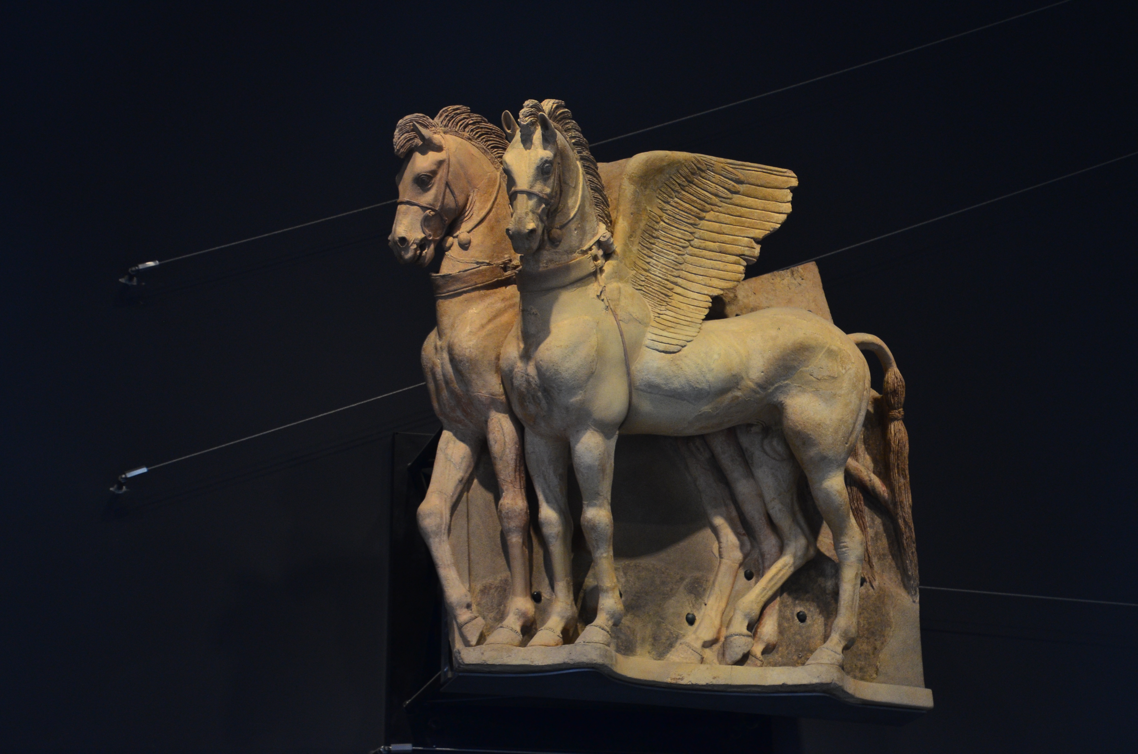The statue of the two horses is perhaps the finest example of Etruscan art, but the remaining parts of the mythological hunting scene comes close.
