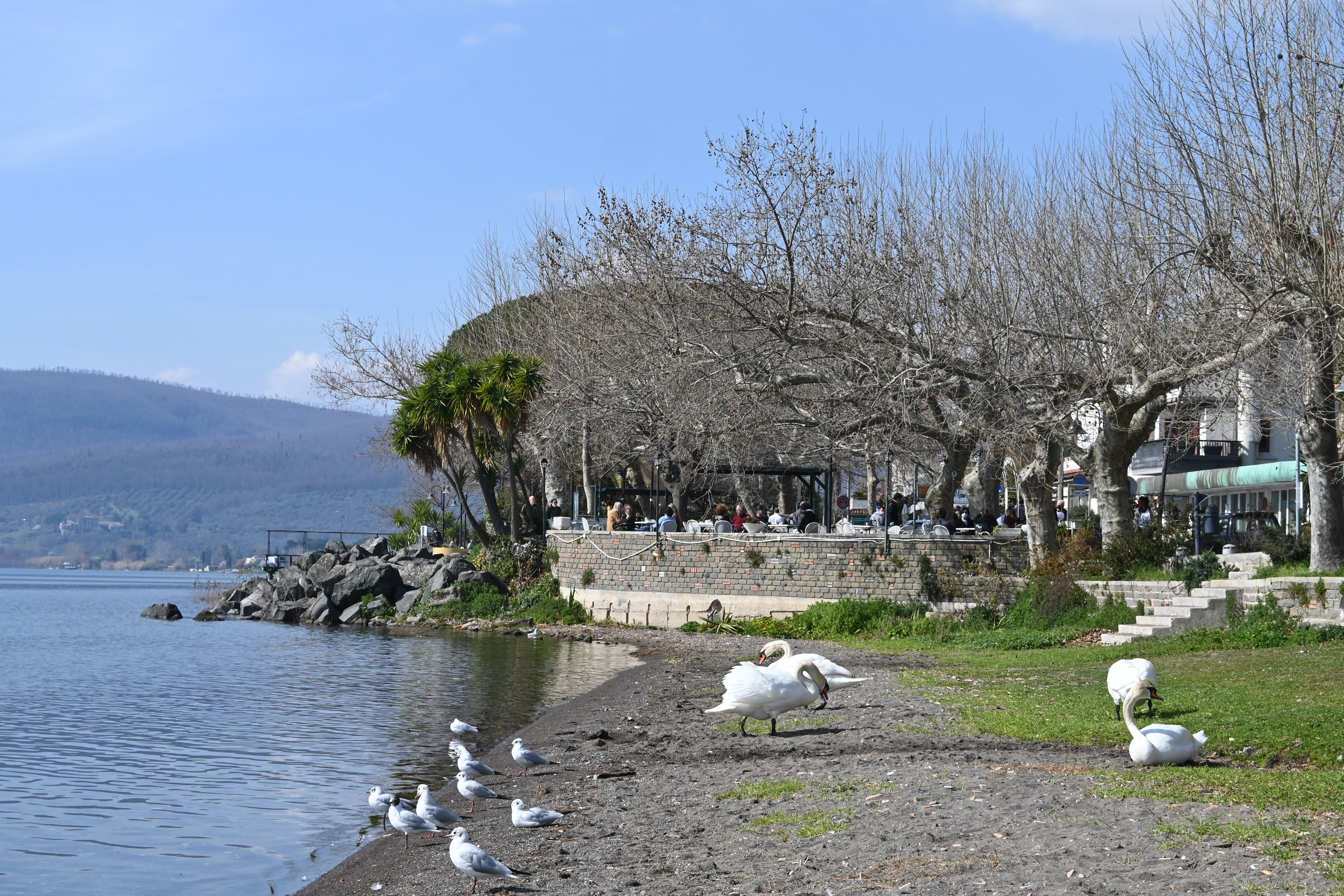 No, it is not Swan Lake, but the lake of Bracciano (Lago di Bracciano). This lake, the seventh largest in Italy, is a water reservoir for Rome and therefore it is subject to very strict environmental protection regulations. As a result, the water is the purest lake water in Italy, and the fresh fish, served in the abundant lakeside restaurants, are the best freshwater fish anywhere.